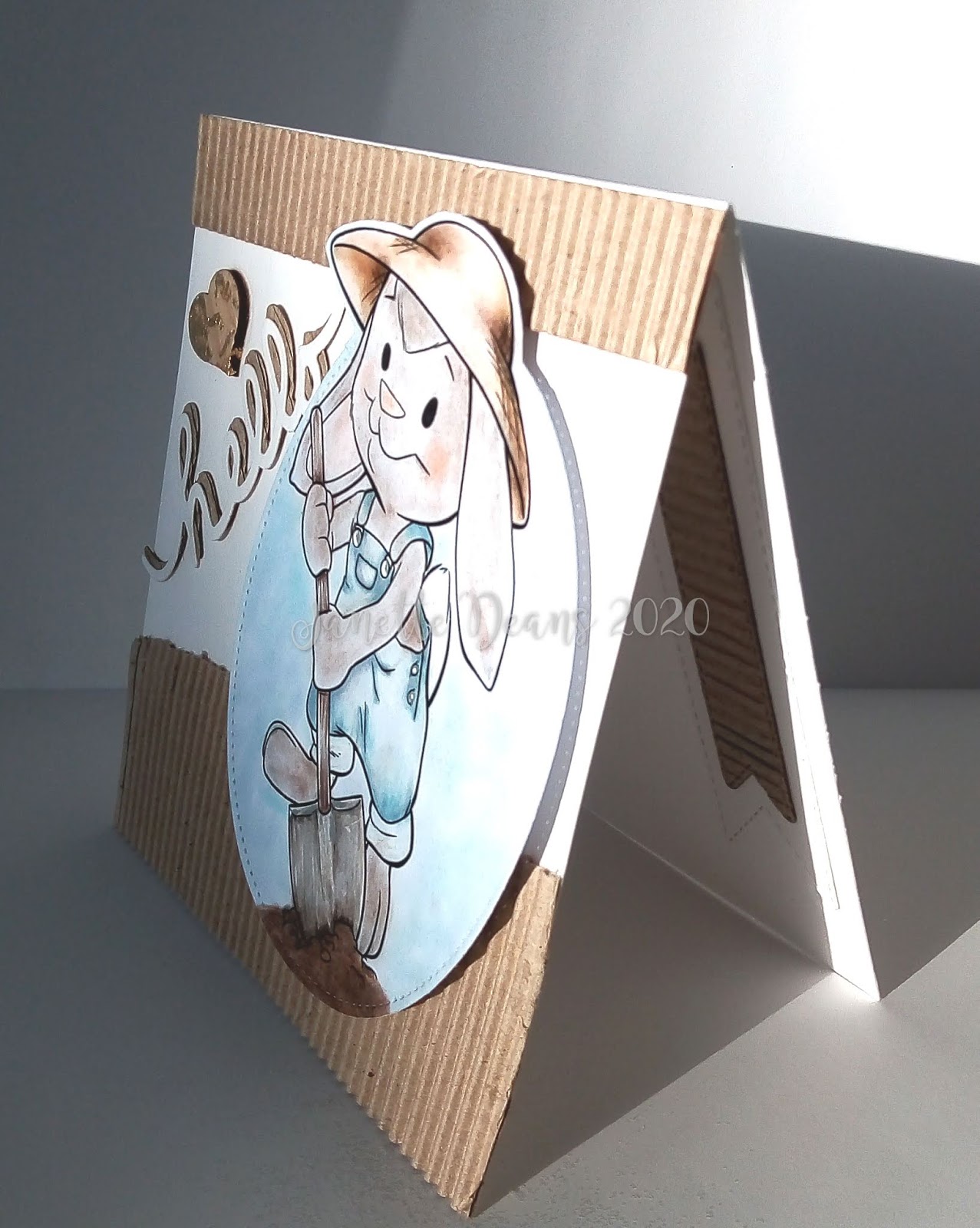 What an adorable little bunny digging away in his garden, his expression is a bit like mine when it comes to gardening..FABulous card..Do not worry about that person and do not leave any more comments, not worth the effort, I'm so grateful for comments I think I published spam once...lol..
